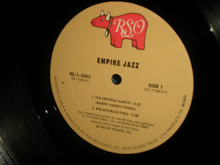 Yes, just when you think you've seen it all - here comes "Empire Jazz". Well, this is a side of Chewbaca I just never knew! Watch out McCoy Tyner! And just dig R2D2 rockin' those beats! C'mon - you know you would have picked this up if you saw it. The cover alone was worth the $3 I paid for this thing. But what also got my attention was the list of musicians involved on the back cover: